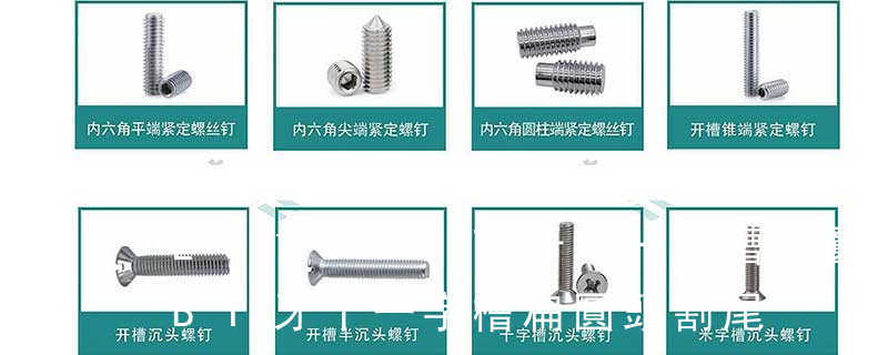 槽型:1.一字2.內三角3.內角四方4.十字5.米字6.花形7.梅花形8.花形一字9.特形10.內六角英文名稱十字槽盤頭組合機絲牙螺釘 采用的是GB818 Cross recessed pan head Combination screws十字槽盤頭機絲牙螺釘 采用的是GB818 Cross