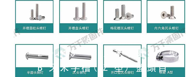 槽型:1.一字2.內三角3.內角四方4.十字5.米字6.花形7.梅花形8.花形一字9.特形10.內六角英文名稱十字槽盤頭組合機絲牙螺釘 采用的是GB818 Cross recessed pan head Combination screws十字槽盤頭機絲牙螺釘 采用的是GB818 Cross
