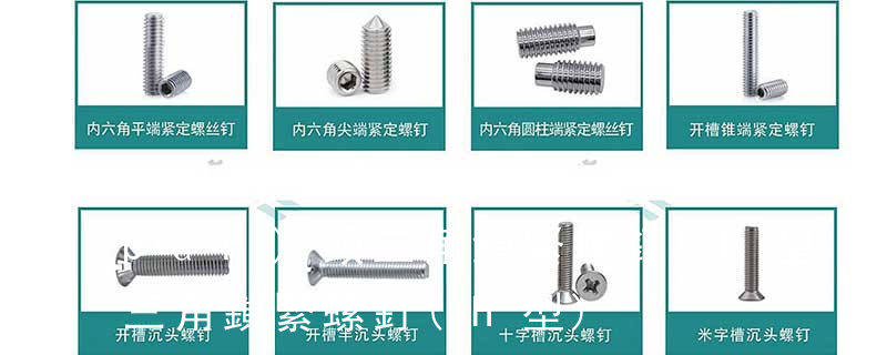 螺栓有:1、方頭螺栓,2、半圓頭方頸螺栓,3、十字槽盤(pán)頭螺釘,4、內(nèi)六角沉頭螺釘,5、方螺母C級(jí),6、蝶形螺母,7、六角頭螺栓,8、十字槽盤(pán)頭自攻螺釘。大小有M18、M6、M8、M16、M10、M12、M14、M20等型號(hào)。通常用 外扳擰:六角、六角法蘭面、六角凸緣、六角花形等;內(nèi)扳擰:一字槽、十字槽H型、十字槽Z型、十字槽F型、四方槽、復(fù)合槽、內(nèi)花鍵、內(nèi)六角花形、內(nèi)三角、內(nèi)六角、內(nèi)12角、離合器槽、六葉片型槽、高扭矩十字槽等。3、